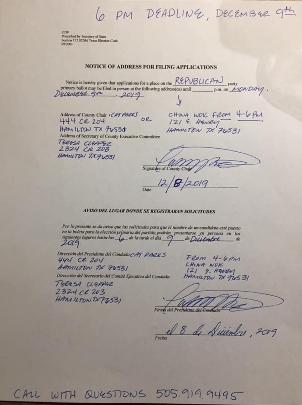 Final day to file: December 9th @ 6pm.